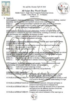 Challenge your students with research and graphic design! All Saints Day Word Clouds Lesson Plan will have your students digging deep to learn about a saint they do not know much about. This lesson can be used as a beginning introduction to creating word clouds or can be used as the culmination.