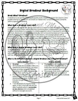 We included all necessary details about this product in both the preview and in the product description below. Please be sure to read both before purchasing. We provide valuable information including what is included in each breakout as well as what technology is required. After viewing the preview and reading the product description, if you have any further questions about this product, please email us at mrandmrsroosterTpT@gmail.com before purchasing.