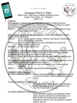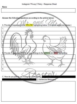 In this lesson, students will investigate, think, discuss, evaluate Instagram’s Privacy Policy and come to a conclusion on how to use Instagram in the future. This contains the latest privacy policy with specific sections highlighted to stir discussion and reflection for students.